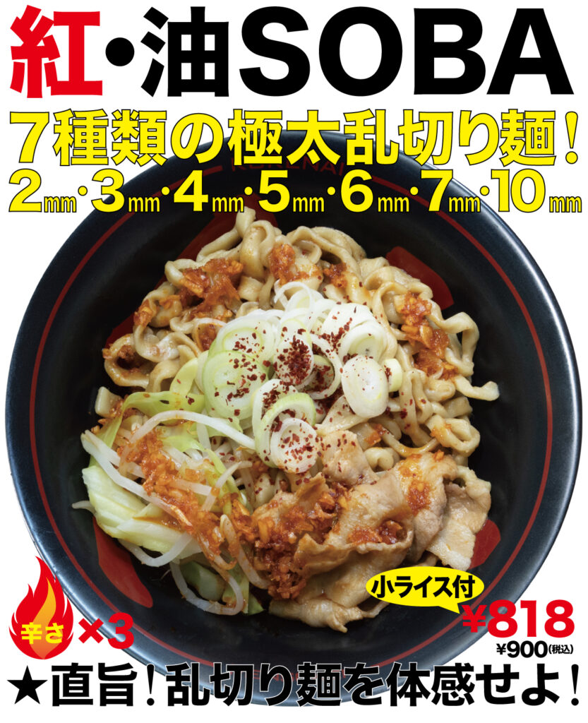 2026年2月13日(金)より乱切り麺を使用した辛味の効いた油そば【紅・油SOBA】を発売いたします。